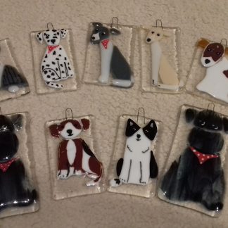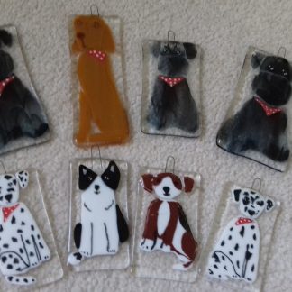 These suncatchers are £5 each and can be made to order. The pictures show the sort of scenes and dogs that are available.